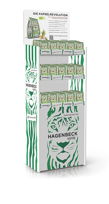 Bringen auch Sie unseren guten HAGENBECK KAFFEE in Ihren Handel. Nicht nur die Packung in der außergewöhnlichen weißen Optik mit dem kupferleuchtenden Tigergesicht wird Ihre Kunden beeindrucken. Vor allem der außergewöhnliche Geschmack der 7 Klassiker oder der 4 BIO-Sorten in Premiumqualität – zu einem vernünftigen Preis – ist unser überzeugendes Verkaufsargument. Für Kunden mit einer Nespresso Kapselmaschine bieten die ökologisch nachhaltigste Kapsel am Markt an. Sie wollen mehr über die Kapsel wissen? Dann folgen Sie diesem LINK.
